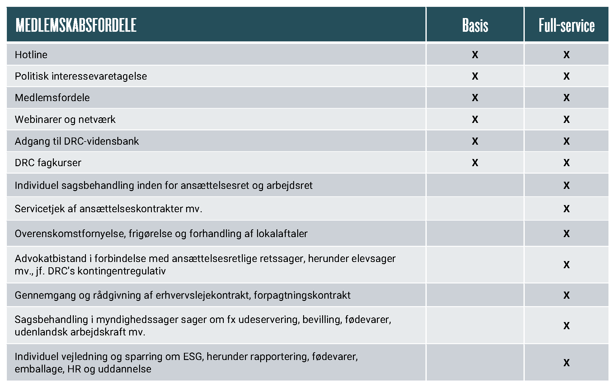 DRC Full-Service indeholder blandt andet adgang til juridisk konsulentbistand, sagsbehandling og retssagsførelse m.v.
